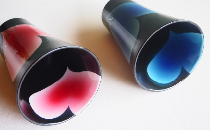 黒巻き技法で製作され、機能性を持ちながら高級感があり、鮮やかなハートのグラデーションが素敵なタンブラーです。