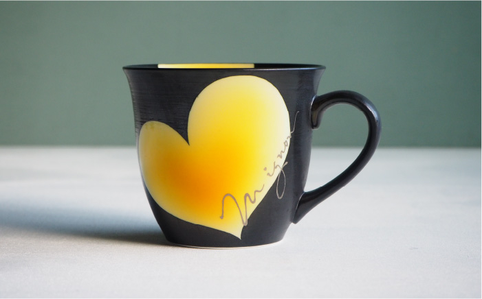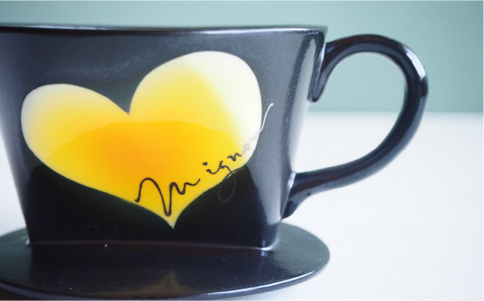 マットな仕上がりで高級感、お家時間を素敵に演出 【波佐見焼】mignon ハート ドリッパー・マグ セット イエロー 食器 皿 【紫明窯・作家はな】【陶藤】 [BE31]