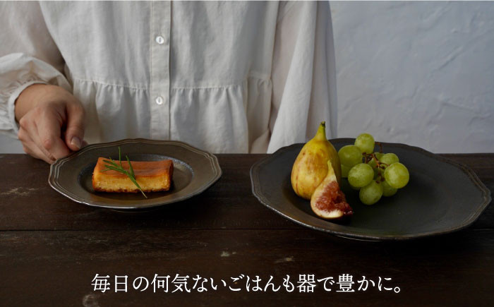 おうちカフェに!アンティークな雰囲気のペアセット 【波佐見焼】RINKA プレート ブラック ペアセット(4点) 食器 皿 【藍染窯】 [JC56]