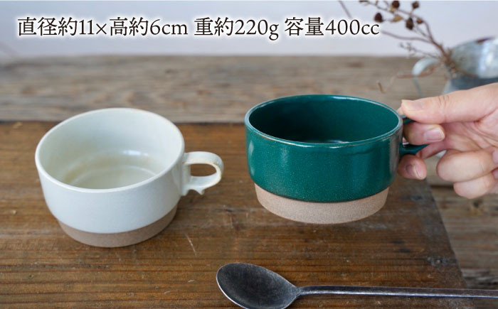 結婚祝いにオススメ!万能サイズのスタッキングできるスープマグ 【波佐見焼】スタックス スープマグ 砂岩 (グリーン×ホワイト) 2点セット 食器 皿 【藍染窯】 [JC59]
