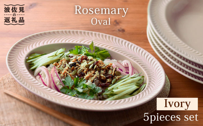 ・色合い・デザイン・使い心地◎ 大人気オーバルプレート 【波佐見焼】ローズマリー (アイボリー) オーバル ボウル 5個セット 食器 皿 【福田陶器店】 [PA227]