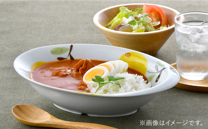福峰陶苑さんの2色の可愛らしい実が連なるカレー、パスタ皿です。