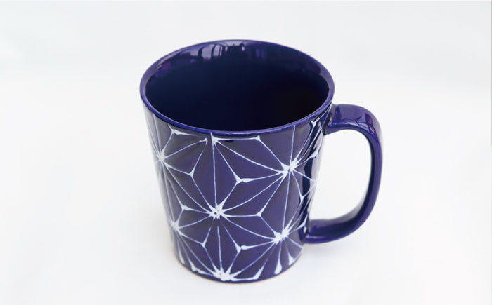 色柄・形が美しい、たっぷり容量のマグカップ。 【波佐見焼】ホワイトライン麻 BIGマグカップ 瑠璃 食器 皿 【翔芳窯】 [FE62]