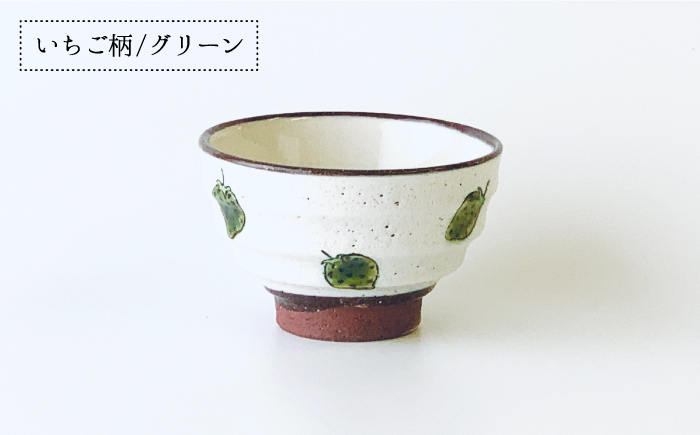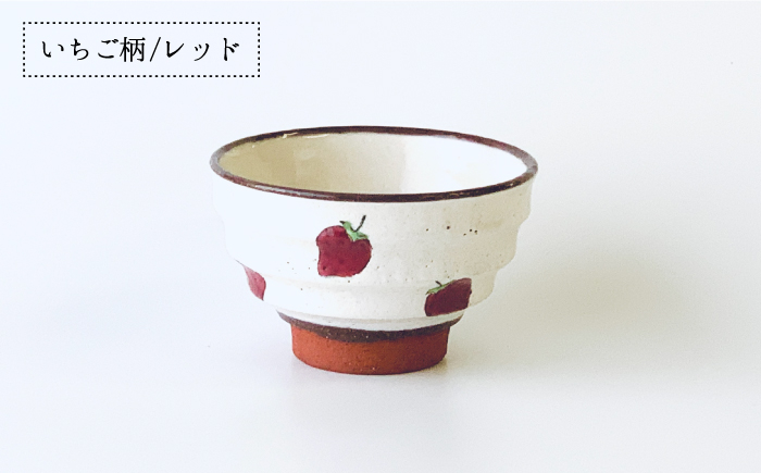 赤土に白化粧をほどこし、独特な色合いの釉薬で手描きの苺が散りばめられています。