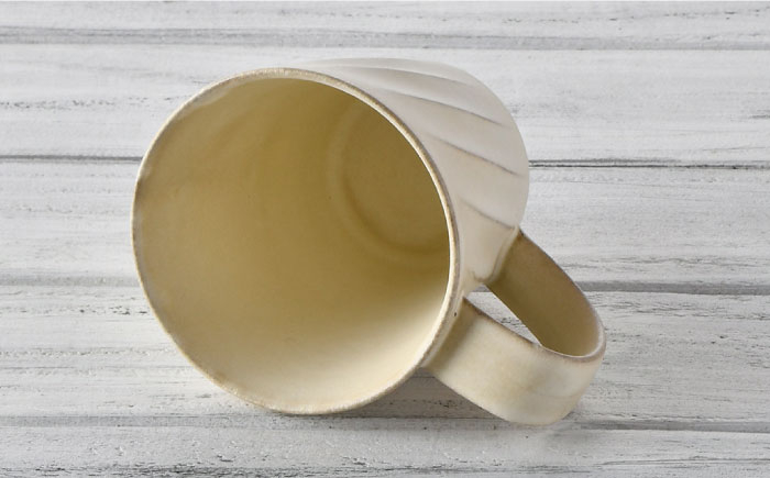 土の温もりが感じられる、ねじり模様のモダンなマグカップです。