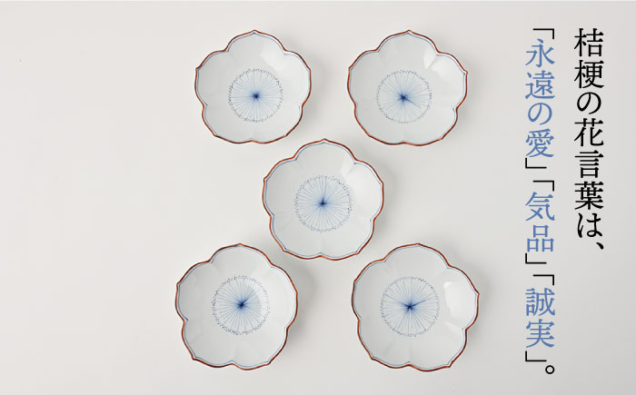 美しい白磁に手描きの桔梗のデザイン、気品のあるお皿です。 【波佐見焼】桔梗絵 桔梗型 取皿 小皿 5枚セット 食器 皿 【福田陶器店】 [PA240]