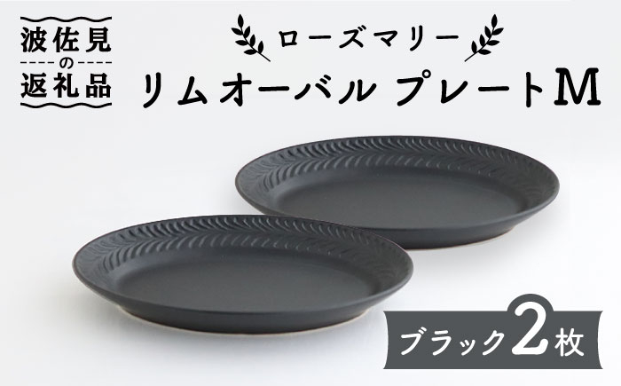 使い勝手の良い大人気のオーバルプレートのセット! 【波佐見焼】ローズマリー リムオーバル プレート M マットブラック 2枚セット 食器 皿 【翔芳窯】 [FE90]
