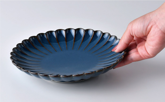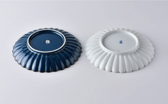 料理を華やかにするうつわ。パスタ皿 カレー皿 としても。 【波佐見焼】菊彫 7寸皿 プレート 白マット・ネイビー ペアセット 輪花皿 食器 皿 【洸琳窯】 [GE56]