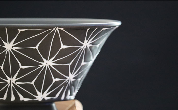 ホワイトラインが美しい、クールなマットブラックのどんぶりです。