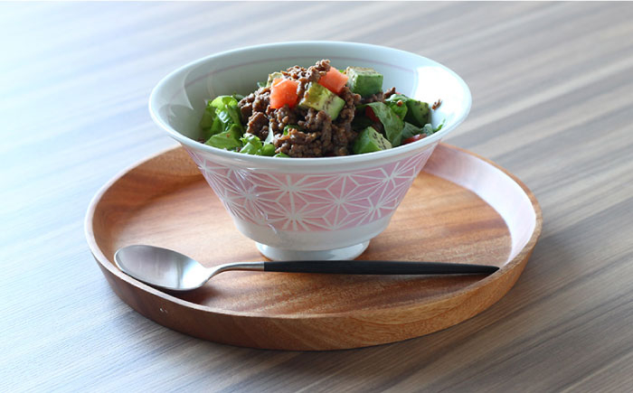 【波佐見焼】麻の葉 おしゃれDON どんぶり ピンク 食器 皿 【Ch…