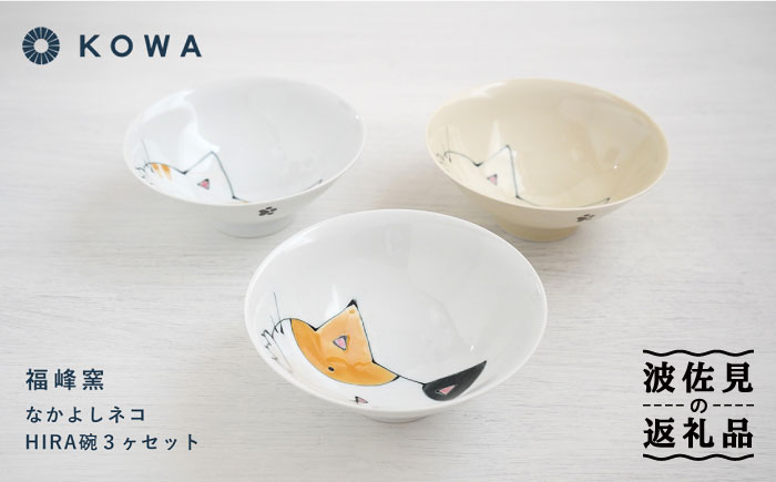 軽くて持ちやすい。ネコ柄が可愛い平碗セット 【波佐見焼】なかよしネコ HIRA碗 3個セット 茶碗 飯碗 ご飯茶碗 ネコ柄 ミケネコ トラネコ ブチネコ 食器 皿 【光和陶器】 [SC58]