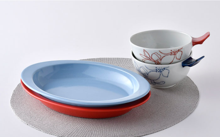 | 容量 | 【セット内容】 『アイユー』 鉄線花eボウル×2色(青・赤) 『マルヒロ』 HASAMI season01 オーバルプレート×2色(レッド・ブルー) 計4点 ※写真はイメージです。セット内容以外は含まれません。 【サイズ】 鉄線花eボウル:幅16×奥行12×高7.5cm 容430ml 重300g オーバルプレート:縦18×横27.5×高3.5cm 容350ml 重560g 【対応機器】 電子レンジ○ / オーブン× / 食器洗浄機○ 【お申し込み前に必ずお読みください】 お届けする返礼品には個体差が生じる場合があります。 下部記載の「個体差について」、「破損・欠陥について」を必ずご一読のうえ、お申し込みください。 |
