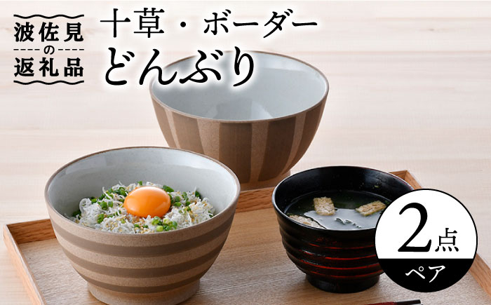 持ち手が熱くならないように仕上げられた丼ぶりです。 【波佐見焼】十草 ボーダー 白 丼 どんぶり ペアセット 食器 皿 【舘山堂】 [RC44]