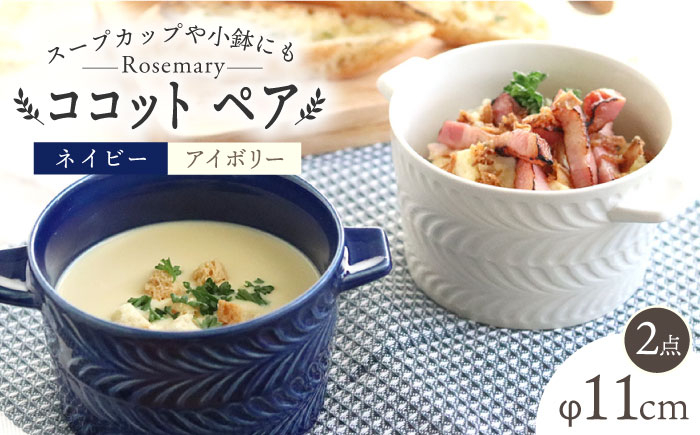 食卓映える!かわいいボウルのペアセット 【波佐見焼】ローズマリー ココット Tボウル ネイビー・アイボリー ペアセット 食器 皿 【翔芳窯】 [FE151]