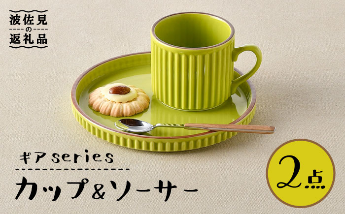 歯車のようなギザギザをかたどった「ギアシリーズ」! 【波佐見焼】ギアシリーズ カップ&ソーサー ライトグリーン プレート マグカップ 17.5cm 6寸 食器 皿 【大新窯】 [DC118]