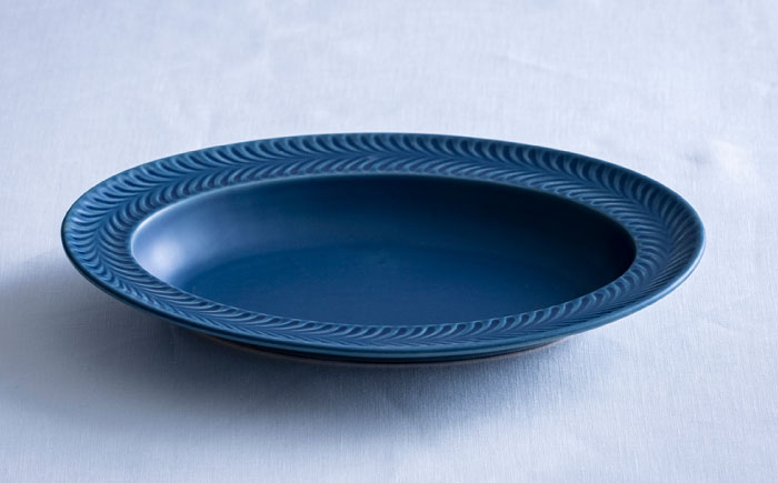 カレー・パスタ・シチューなど、何でも使える主役皿。 【波佐見焼】ローズマリー リムオーバル プレート デニム 食器 皿 【翔芳窯】 [FE204]