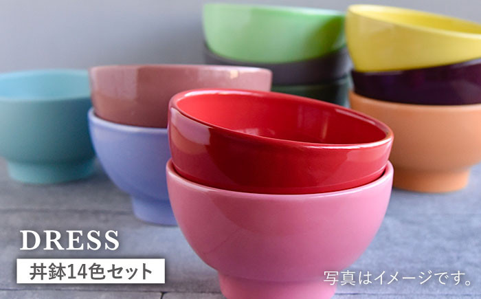 大き過ぎず、小さ過ぎず、ちょうど良い大きさの丼ぶり鉢 【波佐見焼】料理を引き立たせる 丼鉢 どんぶり 14色セット 食器 皿 【DRESS】 [SD38]