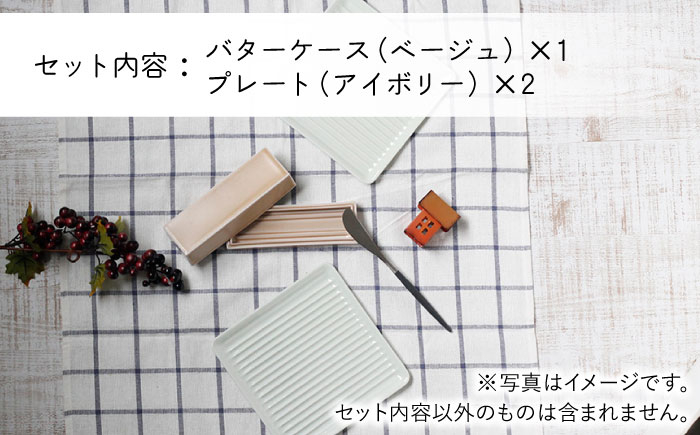 ちょうどいいがつまったバターケースとプレートのセット。 【波佐見焼】ミニ バターケース & Omupan+ パン皿(アイボリー) 2枚セット 食器 皿 【Cheer house】 [AC146]