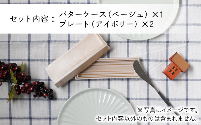 ちょうどいいがつまったバターケースとプレートのセット。 【波佐見焼】ミニ バターケース & Rei プレート(アイボリー) 2枚セット 食器 皿 【Cheer house】 [AC148]