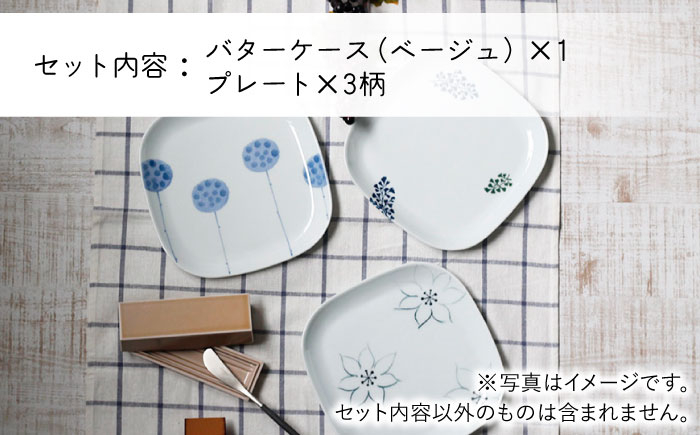 ちょうどいいがつまったバターケースとプレートのセット。 【波佐見焼】ミニ バターケース & モーニング プレート 3枚セット 食器 皿 【Cheer house】 [AC150]