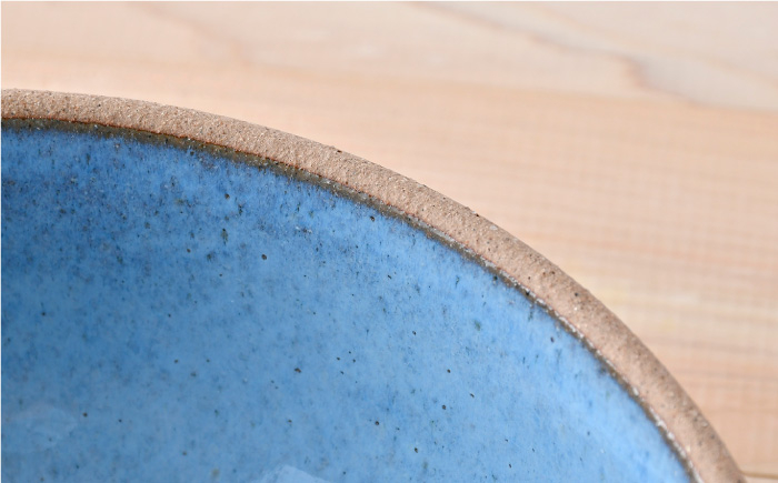 水色の爽やかな色合いに、焼き締めの部分がデザインされたナチュラル感が魅力的。