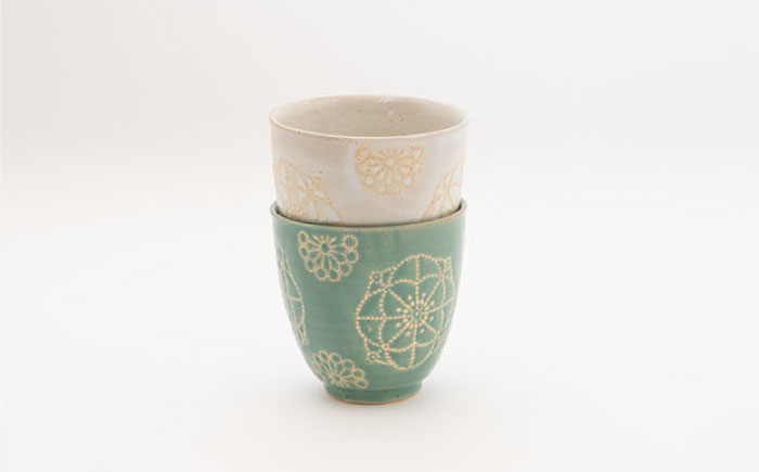 【波佐見焼】ステッチ コップ 2点セット(ホワイト×ミントグリーン) 食器 湯呑み ペア【藍染窯】 [JC125]