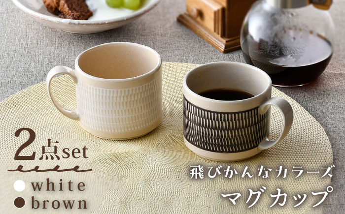 伝統的な技法の飛びかんな 【波佐見焼】マグカップ (ホワイト・ブラウン)ペアセット 2点 飛びかんな カラーズ 食器 皿【長十郎窯】 [AE65]
