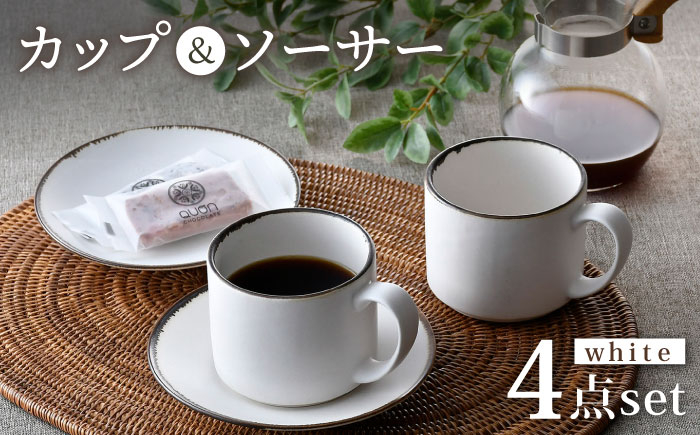 アンティーク品の様な風合いのマットホワイト 【波佐見焼】カップ&ソーサー ペアセット 4点 渕錆ホワイト 食器 皿 【長十郎窯】 [AE76]