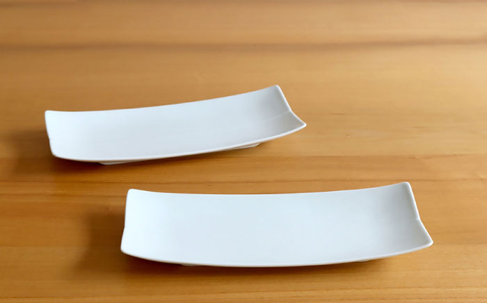 四隅の反りが料理を引き立て、和食以外の多彩なメニューにも。 【白山陶器】【長方皿】長焼皿 白磁 2枚セット [TA147]