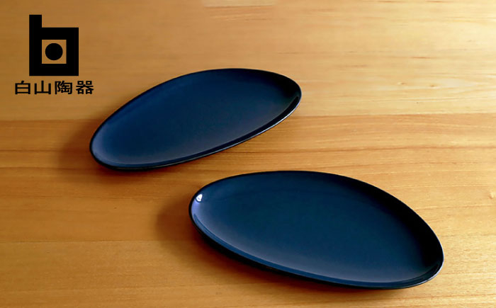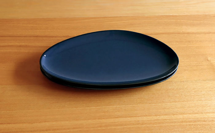 ナチュラルな造形は置く方向によって表情が変化します。 【白山陶器】【グッドデザイン賞受賞】ペトラ ロングプレート(M) ネイビー 2枚セット [TA157]