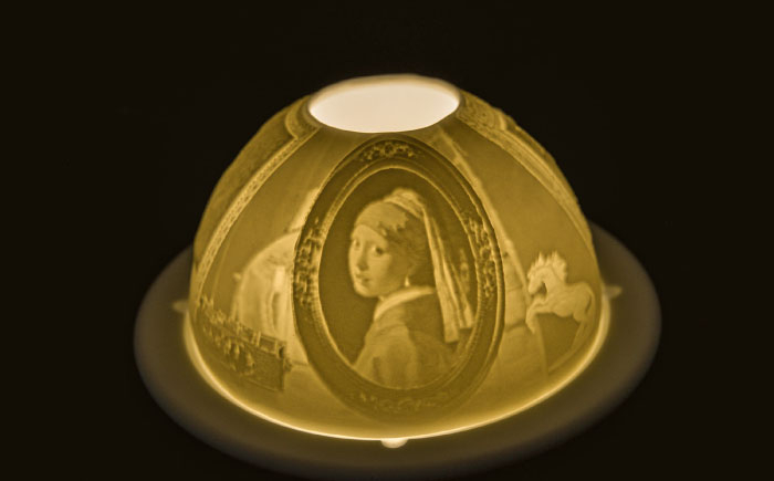 陶磁器の透かし絵、リトファニーのキャンドルライト 【波佐見焼】リトファニーキャンドルライト〈フェルメール〉【ルセラ・ポーセリン】 [CG05]