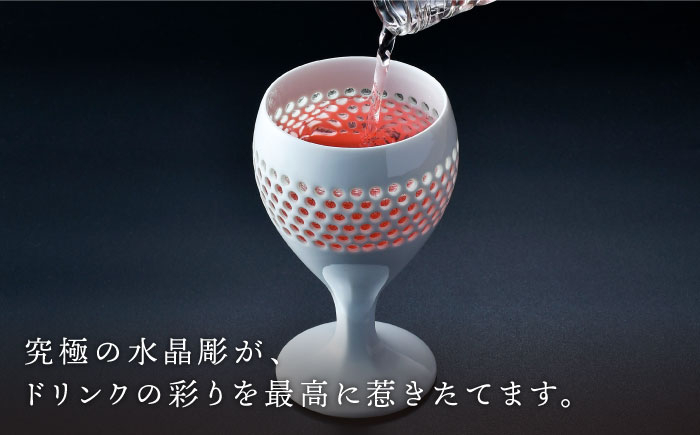 唯一無二の個性を放つ水晶彫をあしらったショートサイズのワイングラスは、ドリンクの彩りを鮮やかに表現します。