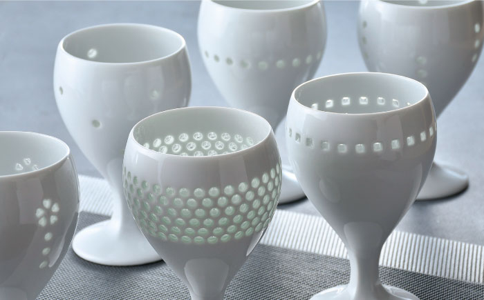 気取らずカジュアルにワインやビールを楽しむ水晶彫のフルセット 【波佐見焼】水晶彫ショートワイン 6ピースセット 食器【丹心窯】 [AB43]