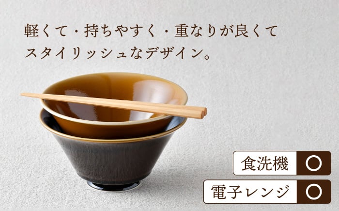 毎日の食卓を彩る食器♪ 【波佐見焼】カラーイケメン丼 2個セット(アメ釉・キャメル)食器【一龍陶苑】 [CC83]