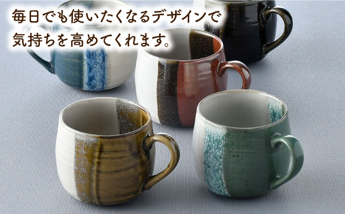 たっぷり入って持ちやすく、コロンと可愛いマグカップ 【波佐見焼】掛け分け マグカップ 2色セット (織部&黒伊羅保) 食器【ROXY・HASAMI】 [SB170]