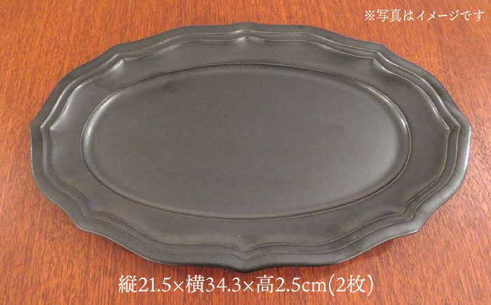 【波佐見焼】h+黒釉 レリーフ プレート Lサイズ 2枚セット 食器 皿 パスタ皿 【堀江陶器】 [JD180]