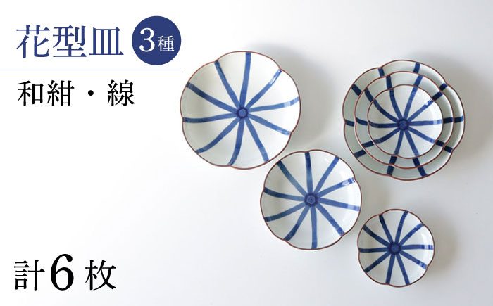 紺色を使ったシンプルなデザインのお皿 【波佐見焼】和紺・線 花型皿 3種類 6枚セット 食器 プレート【奥川陶器】 [KB69]