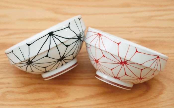 縁起が良いといわれる麻の葉柄のどんぶり。