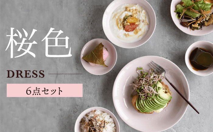 料理を引き立たせる色と形のおしゃれな食器6点セット 【波佐見焼】桜色の波佐見焼 6型セット 小皿 茶碗 小鉢 大皿 【DRESS】 [SD49]
