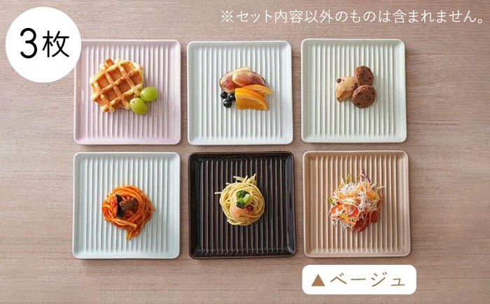 ちょうど食パンが1枚のる大きさ。凹凸加工で蒸れずにおいしく◎ 【波佐見焼】Omupan+ パン皿 3枚セット 15.5cm ベージュ 【Cheer house】 [AC253]