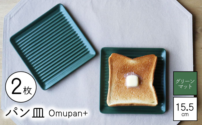 ちょうど食パンが1枚のる大きさ。凹凸加工で蒸れずにおいしく◎ 【波佐見焼】Omupan+ パン皿 2枚セット 15.5cm グリーンマット【Cheer house】 [AC260]