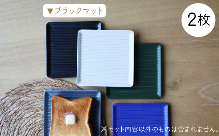 ちょうど食パンが1枚のる大きさ。凹凸加工で蒸れずにおいしく◎ 【波佐見焼】Omupan+ パン皿 2枚セット 15.5cm ブラックマット【Cheer house】 [AC262]