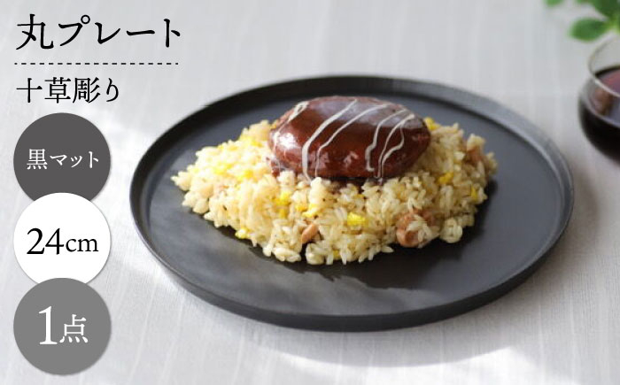 縁の立ち上がりを低くして、縦に彫りを入れたスタイリッシュな皿 【波佐見焼】十草彫り 24cm 丸プレート 黒マット 1点【永泉】 [MC91]