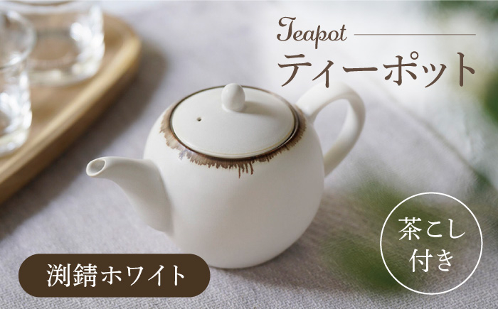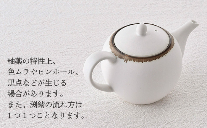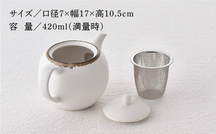 釉薬の質感、色味にこだわったマットホワイト 【波佐見焼】丸型ティーポット 渕錆ホワイト 茶こし付き【長十郎窯】 [AE97]