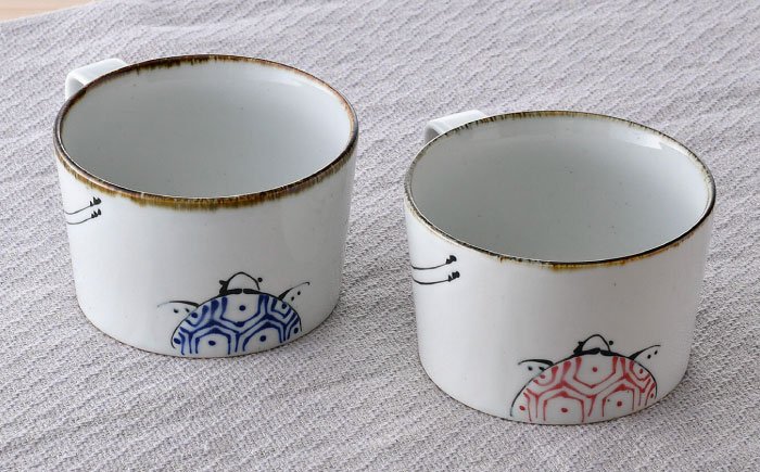 当店オリジナル! かわいいつるかめが一つになった手描きスープマグはいかがですか? 【波佐見焼】つるかめ スープマグ 2点セット【伸栄陶器】 [JG08]