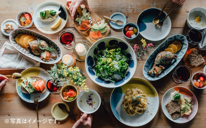 | 容量 | 【セット内容】 SAUceプレートL ×1 (グリーン×ネイビー) 【サイズなど】 SAUceプレートL:径24×高2cm 重390g(1個あたり) ※質感:色の釉薬がかかっている部分はつやあり 白い部分はマット ※写真はイメージです。セット内容以外のものは含まれておりません。 【対応機器】 電子レンジ○ / オーブン× / 食洗機○ |