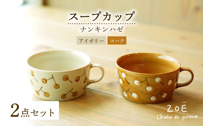 総手描きのナンキンハゼの実がかわいい スープカップ 【波佐見焼】ナンキンハゼ スープカップ 2点セット コハク・アイボリー【ZOE・一誠陶器】 [VE48]