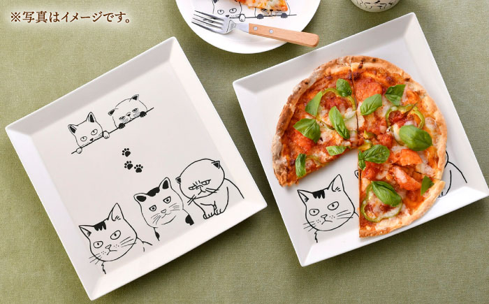 ネコに囲まれた暮らしが最高!福田陶器店オリジナル、いい顔したネコシリーズです! 【波佐見焼】ネコづくし 大スクエアプレート ペア 2枚セット【福田陶器店】 [PA349]