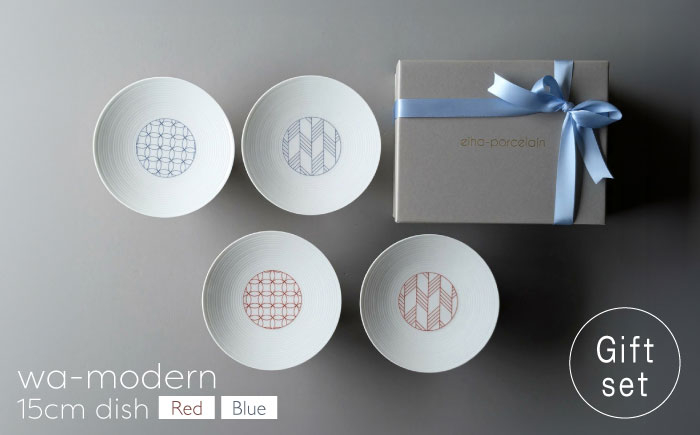 日本の伝統模様を現代的にデザインされた和モダンシリーズです。 【波佐見焼】ギフトセット 和モダン七宝&矢羽 15cm 取り皿 赤&青 4枚セット【永峰製磁 eiho】 [RA87]