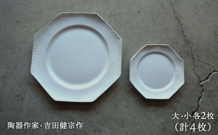 陶器作家・吉田健宗の代表作ともいえる「オクトゴナル(八角形)シリーズ」の中でも、使いやすい大・小のお皿各2枚セットです。